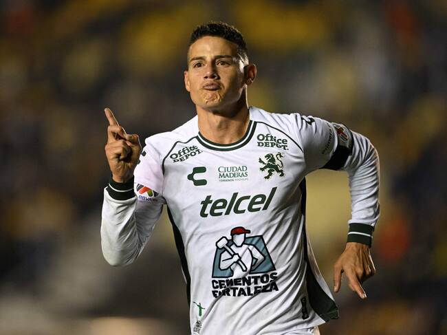 Leon's Colombian midfielder #10 James Rodriguez celebrates after scoring during the Liga MX Clausura football match between America and Leon at the Sports City Stadium in Mexico City on February 19, 2025. (Photo by Yuri CORTEZ / AFP) (Photo by YURI CORTEZ/AFP via Getty Images) / YURI CORTEZ