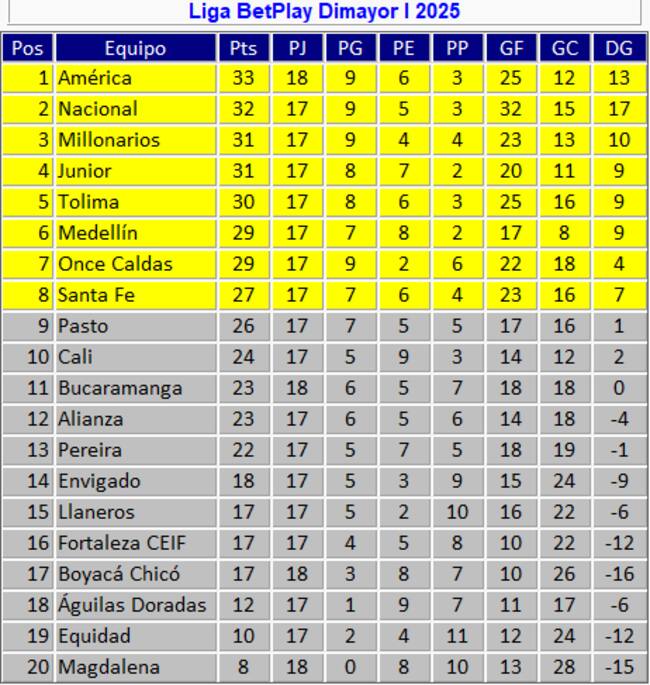 El Embajador, tras su reciente empate 0-0 con Deportivo Pereira, aseguró su tiquete en los cuadrangulares finales del campeonato, es tercero con 31 puntos. Por su parte, los dirigidos por Hernán Darío Herrera están en la séptima casilla y han sumado 29 puntos, recordemos que la Dimayor le dio la victoria a Once Caldas antes Unión Magdalena por los hechos violentos ocurridos en el estadio Sierra Nevada.