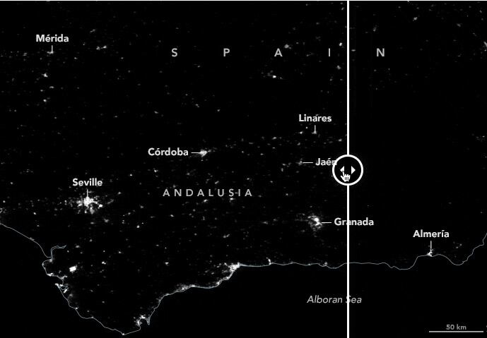 Si bien este se restableció en la mayor parte del territorio al anochecer, algunas zonas permanecieron a oscuras durante más tiempo. En Andalucía oriental, al sur de España, las provincias de Almería y Granada muestran en las imágenes pérdida de luminosidad urbana hasta bien entrada la madrugada, apunta la ESA.