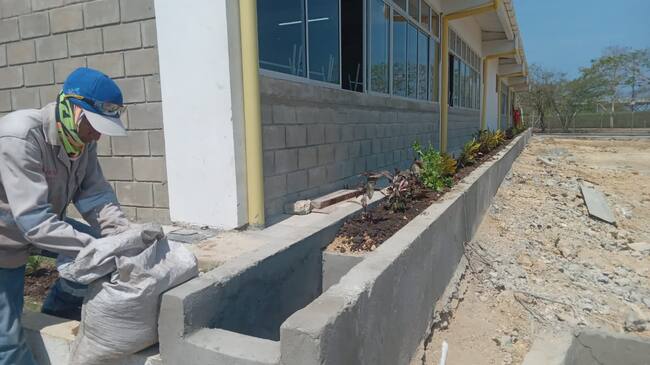 Acuacar brindó asistencia técnica en obras de I.E. de Tierra Baja: también sembró 450 plantas