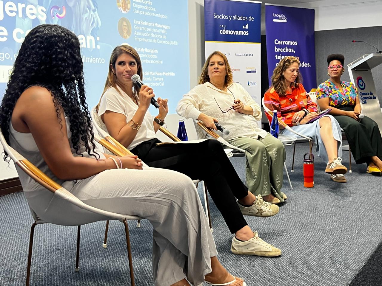 Luego de este primero momento, con tres charlas clave para contextualizar a la audiencia, se realizó un conversatorio central, del que participaron María del Mar Palau, presidenta de la Cámara de Comercio de Cali; Lina Sinisterra, gerente de la ANDI Valle; Nathaly Ibargüen, emprendedora de Quilombo Ancestral, y Sandra Cortés, emprendedora de Gulupa Sabores Mágicos. El espacio fue moderado por la directora de El País, Vicky Perea.
