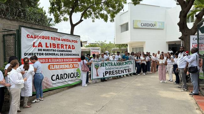 Trabajadores de Cardique junto a Sintrambiente (Sindicato de Trabajadores del Sistema Nacional Ambiental), realizaron un plantón en la parte externa de la entidad en Cartagena para pedir la liberación de Arnold Rincón López, director de Codechocó, quien se encuentra privado de la libertad.