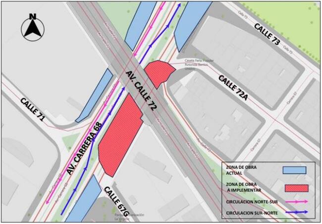 La carrera 68 entre calles 67G y 72A de Bogotá estará totalmente cerrada durante dos meses