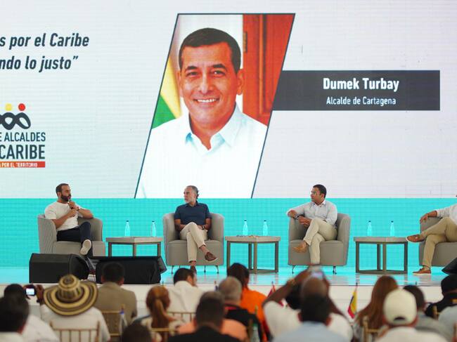 El ministro Benedetti compartió panel con Dumek Turbay, alcalde de Cartagena; Hugo Kerguelen, alcalde de Montería; y Erasmo Zuleta, gobernador de Córdoba, quienes lo invitaron a ser puente con el Gobierno de Gustavo Petro.