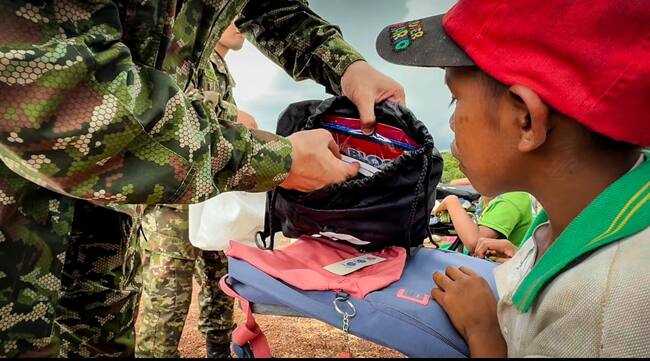 Gracias a una alianza entre las Fuerzas Militares de Colombia y la Fundación Recupera Tu Silla, la empresa Totto y la iglesia El Lugar de Su Presencia, los estudiantes del Centro Educativo Chaparral (resguardo Caño Meseta Dagua) y de la Escuela El Progreso recibieron pupitres, morrales y kits escolares.