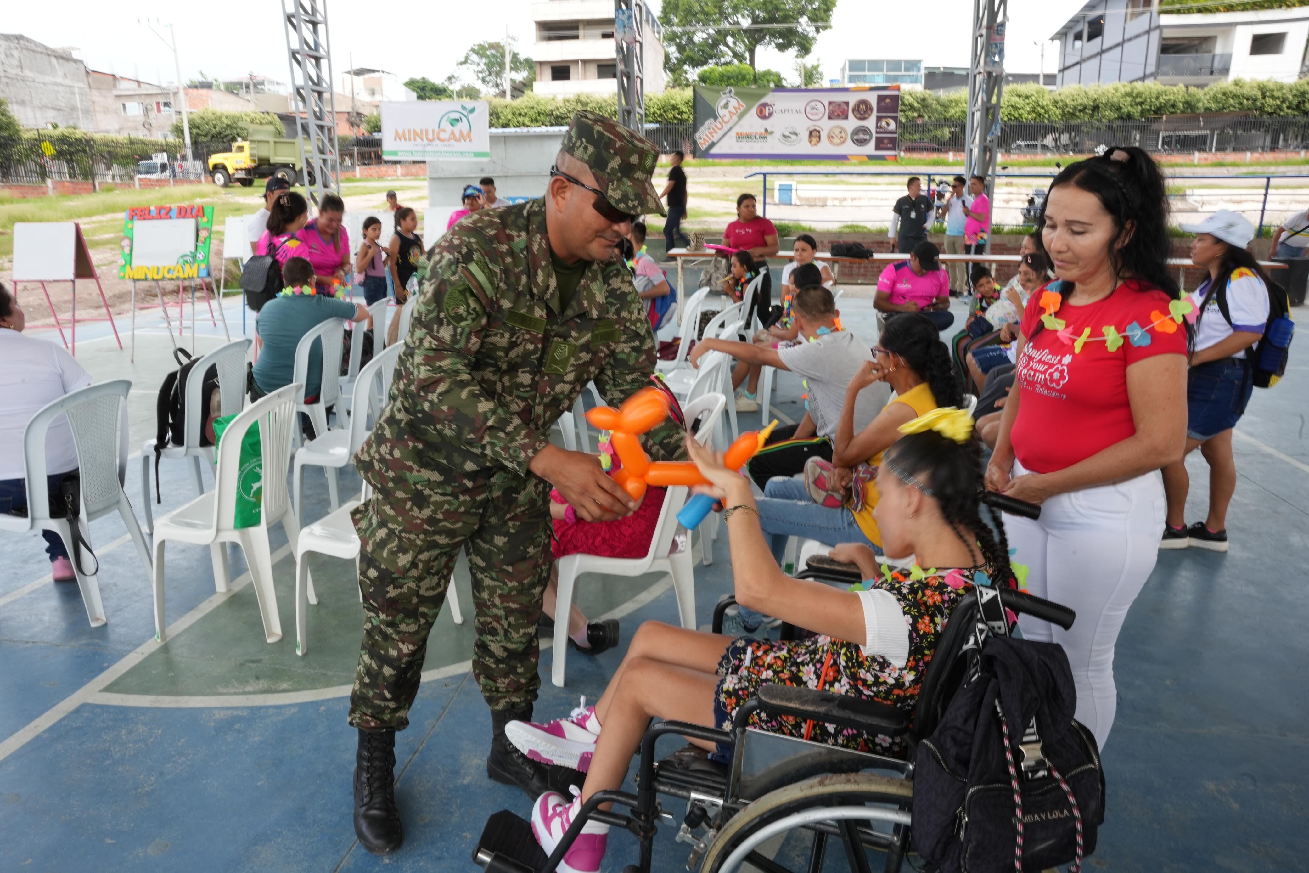 El Ejército Nacional acompañó a 40 niños y niñas en condición de discapacidad en Santa Rosa del Sur, Bolívar, en un evento diseñado especialmente para ellos y sus familias. La actividad se convirtió un acto de reconocimiento, dignificación y amor.