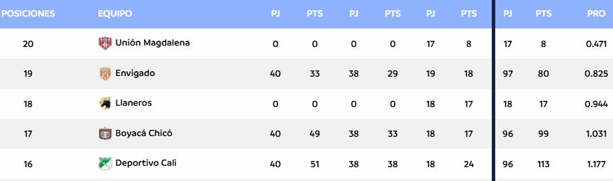 Por su parte, Envigado quedó en una posición complicada en la tabla del descenso, donde marcha penúltimo, únicamente por delante de Unión Magdalena, que aún no conoce la victoria en el primer semestre de 2025. ‘La Cantera de Héroes’ quedó sembrado en la zona roja de esta clasificación con 0,82 de promedio. ‘La Cantera’ deberá luchar por elevar su promedio más que equipos como Llaneros, Boyacá Chicó o Deportivo Cali; para evitar perder la categoría en la primera división del fútbol colombiano.