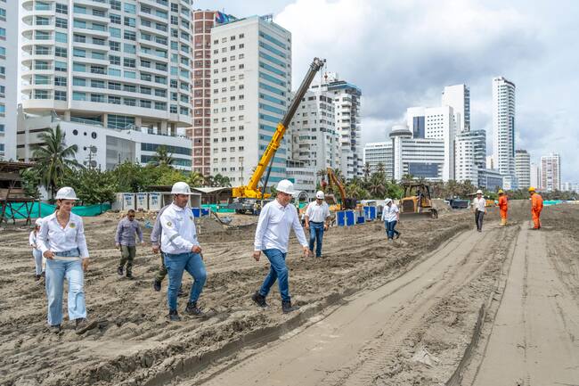 Por ello, para inspeccionar el avance de las obras y determinar la fecha de su finalización, el alcalde Dumek Turbay recorrió las playas de Bocagrande donde se hacen los trabajos.