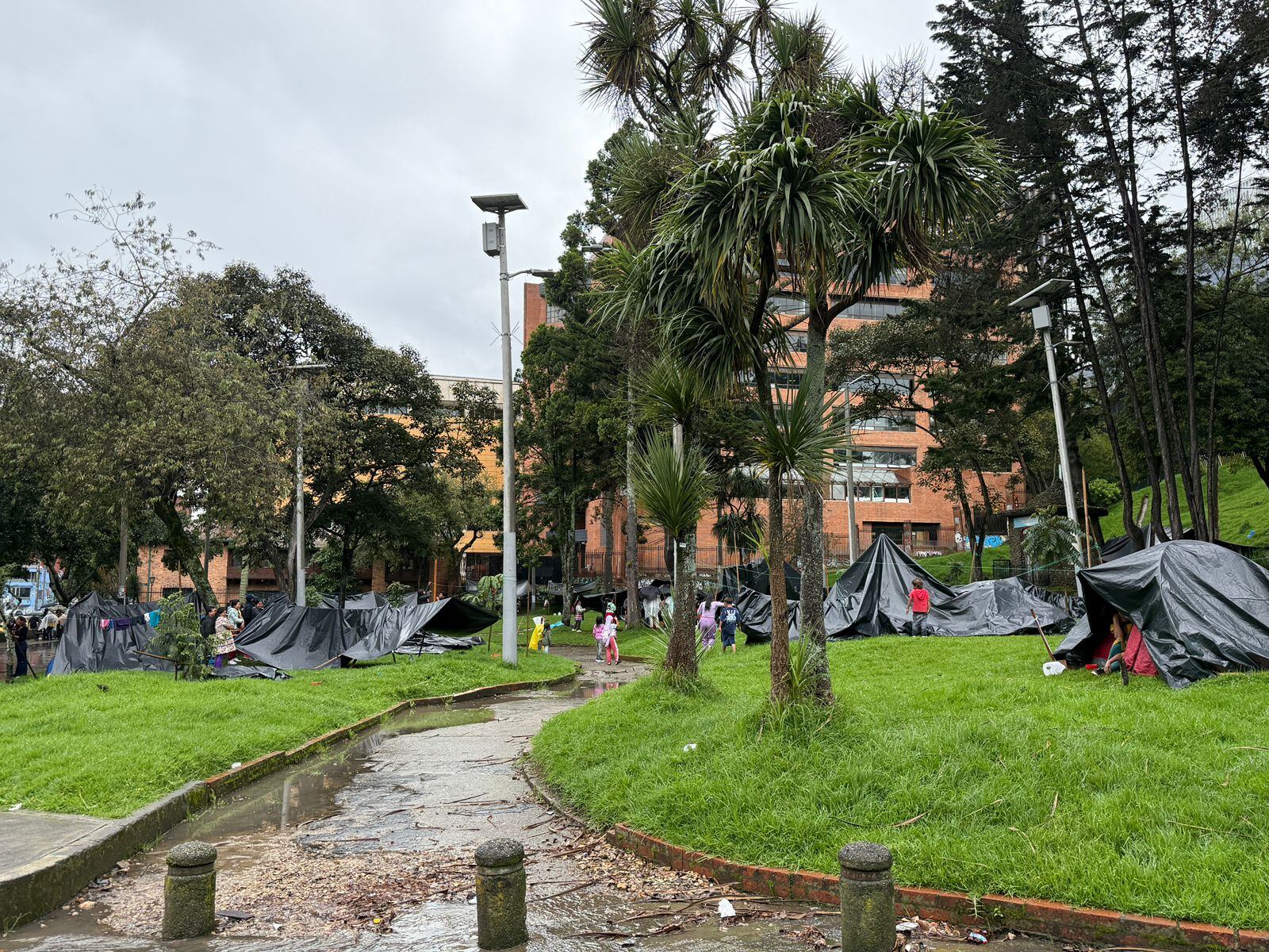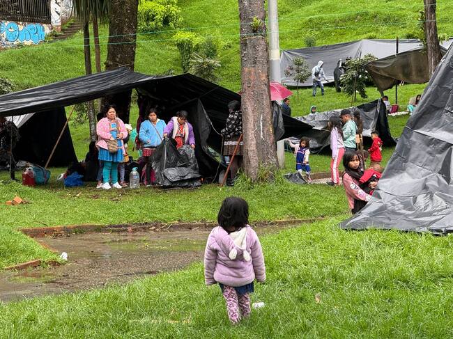 Con carpas plásticas negras en el predio de la calle 39 con carrera séptima y en medio de las lluvias, más de 300 indígenas, dentro esos 150 niños y niñas, le piden al Gobierno Nacional el retorno a sus territorios.