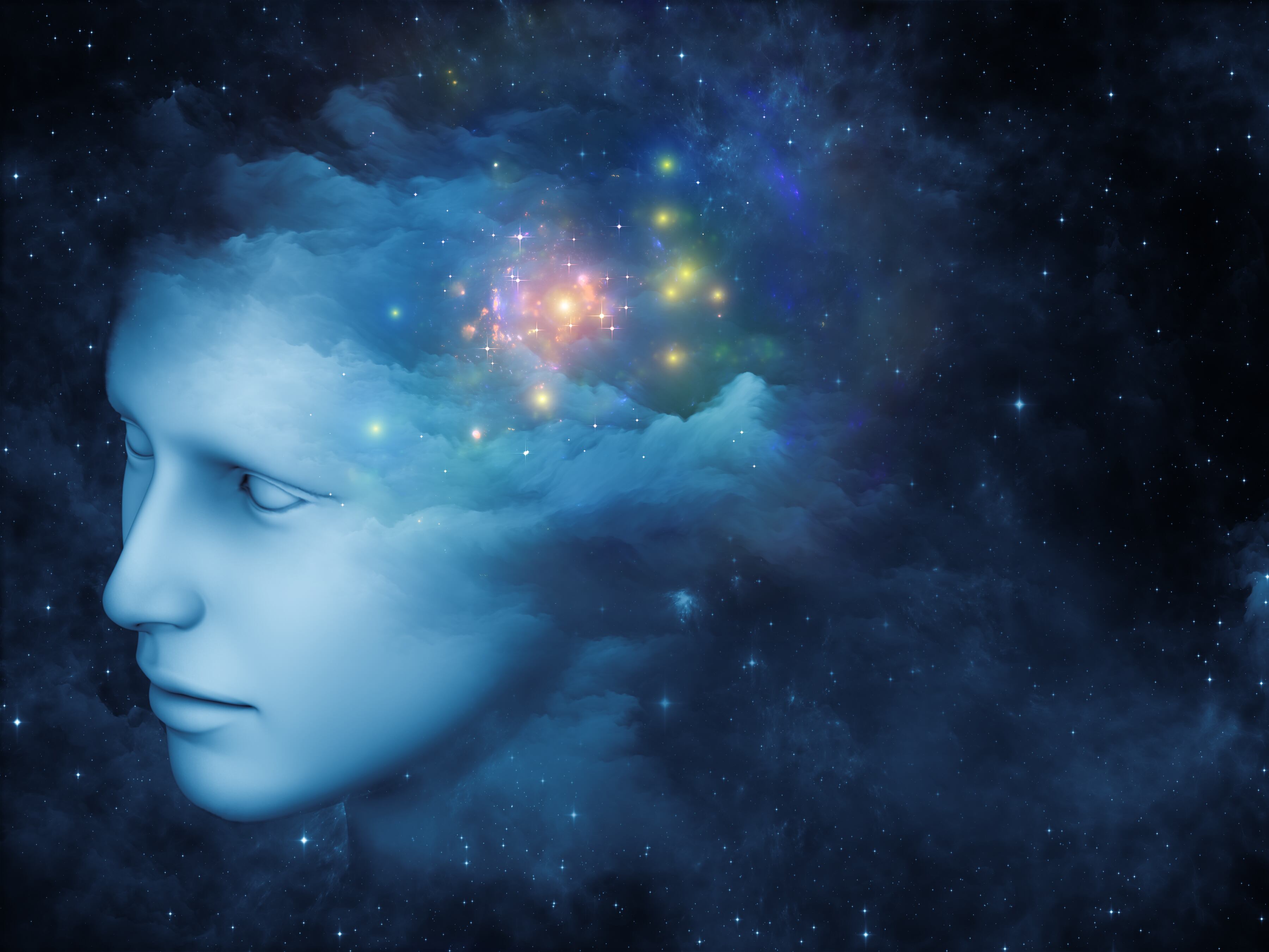 Universal Mind series. Visually pleasing composition of human head and fractal clouds to serve as background in works on mind, dreams, thinking, consciousness and imagination / agsandrew