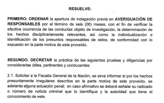 La Procuraduría decretó una seríe de pruebas que incluyen visitas a la sede de la Armada Nacional y la recolección de los testimonios de algunos contratistas que denunciaron estos hechos en la Fiscalía.