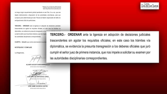 “Ordenar ante la ligereza en adopción de decisiones judiciales trascendentes sin agotar los requisitos oficiales; en este caso los trámites de vía diplomática, se evidencia la presunta transgresión de los deberes oficiales que juró cumplir el señor juez de primera instancia, que nos impele a solicitar su examen por las autoridades disciplinarias correspondientes”