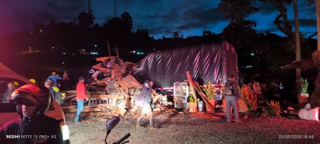 Según el reporte de la oficina de Gestión del Riesgo de Caldas, el accidente se registró en la vereda Salinas, donde un camión sin frenos ocasionó la emergencia. Por fortuna, el conductor del segundo camión salió ileso, pese a que fue impactado.