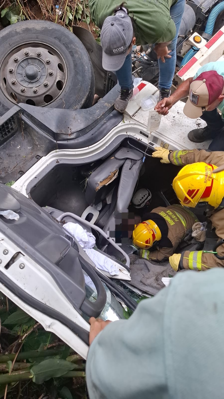Andrés Barbosa, jefe de operaciones de Bomberos Pereira, expresó que el rescate del conductor duró alrededor de dos horas y media, mientras paramédicos lo mantuvieron estabilizado.
