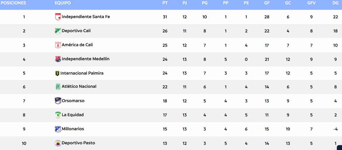 Como se mencionó anteriormente, ‘Las Leonas’ dominan la punta del campeonato, si embargo, Independiente Medellín se perfila como otro de los equipos a vencer, ya que es el único club que no conoce la derrota, y ‘Las Poderosas’ suman 8 derrotas y 5 empates en el cierre de la fecha 13.
