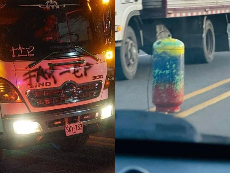 Disidencias instalaron retén ilegal en la vía Panamericana: pintaron vehículos e instalaron cilindro