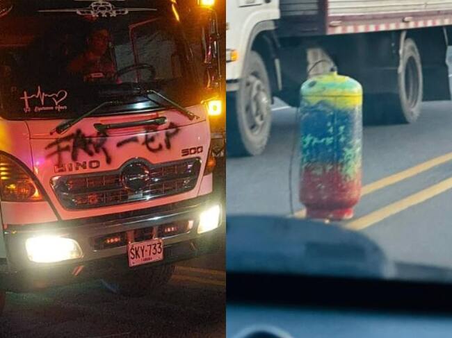 Disidencias de ‘Iván Mordisco’ instalaron un retén ilegal en la vía Panamericana entre Popayán y Cali donde pintaron vehículos, instalaron cilindros y propaganda, y atravesaron un ‘tracto-camión’.