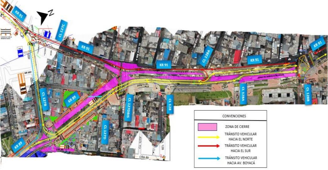 De acuerdo con la entidad, este cierre, que también incluye un carril en ambos sentidos de la carrera 91, entre calles 128 y 128B, se debe a las actividades de construcción de la Av. El Rincón en esa zona.