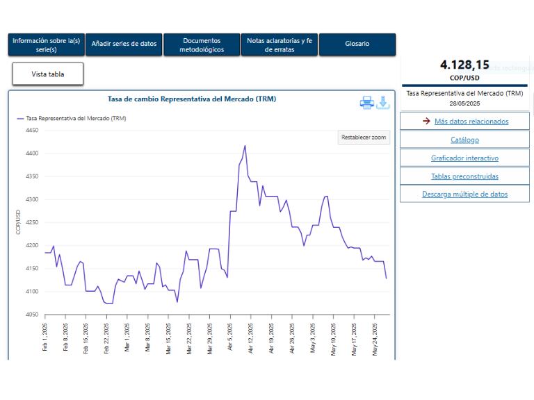 Tasa de cambio Representativa del Mercado (TRM)