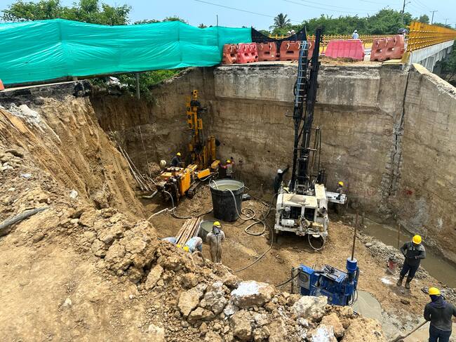 2. Estabilización del suelo: A través de la técnica de jet grouting, que consiste en la inyección a alta presión de una mezcla de suelo y cemento, se ha logrado estabilizar la base de soporte del terraplén. Esta acción ha permitido la construcción de 4 columnas de 6 metros de altura cada una, fundamentales para garantizar la estabilidad del terreno.