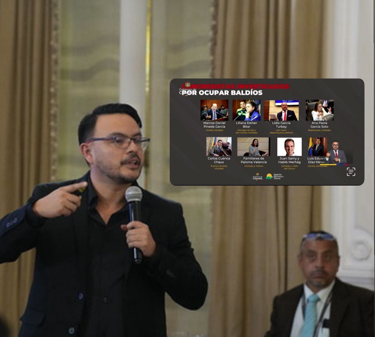 “Nosotros hemos revisado de forma clara, cuáles son presuntamente los congresistas que acaparan la tierra en Colombia. Nos hemos encontrado preliminarmente, un ejercicio que está en investigación de que al menos uno de cada tres congresistas tienen relaciones y vínculos con temas de baldíos (...) algunos de ellos fallados de alguna manera desde el punto de vista administrativo”, indicó del director Felipe Harman.