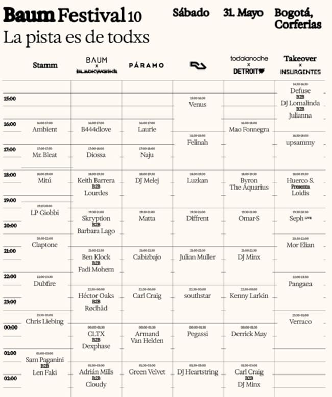 Finalmente el Baum Festival, esta en la recta final. Lo que significa que los Horarios están listos para que armen sus rutas de baile. “Somos parte de la emoción que sentimos todxs, y esperamos que estos 10 años sean un paso importante para la electrónica nacional” afirmaron los organizadores
