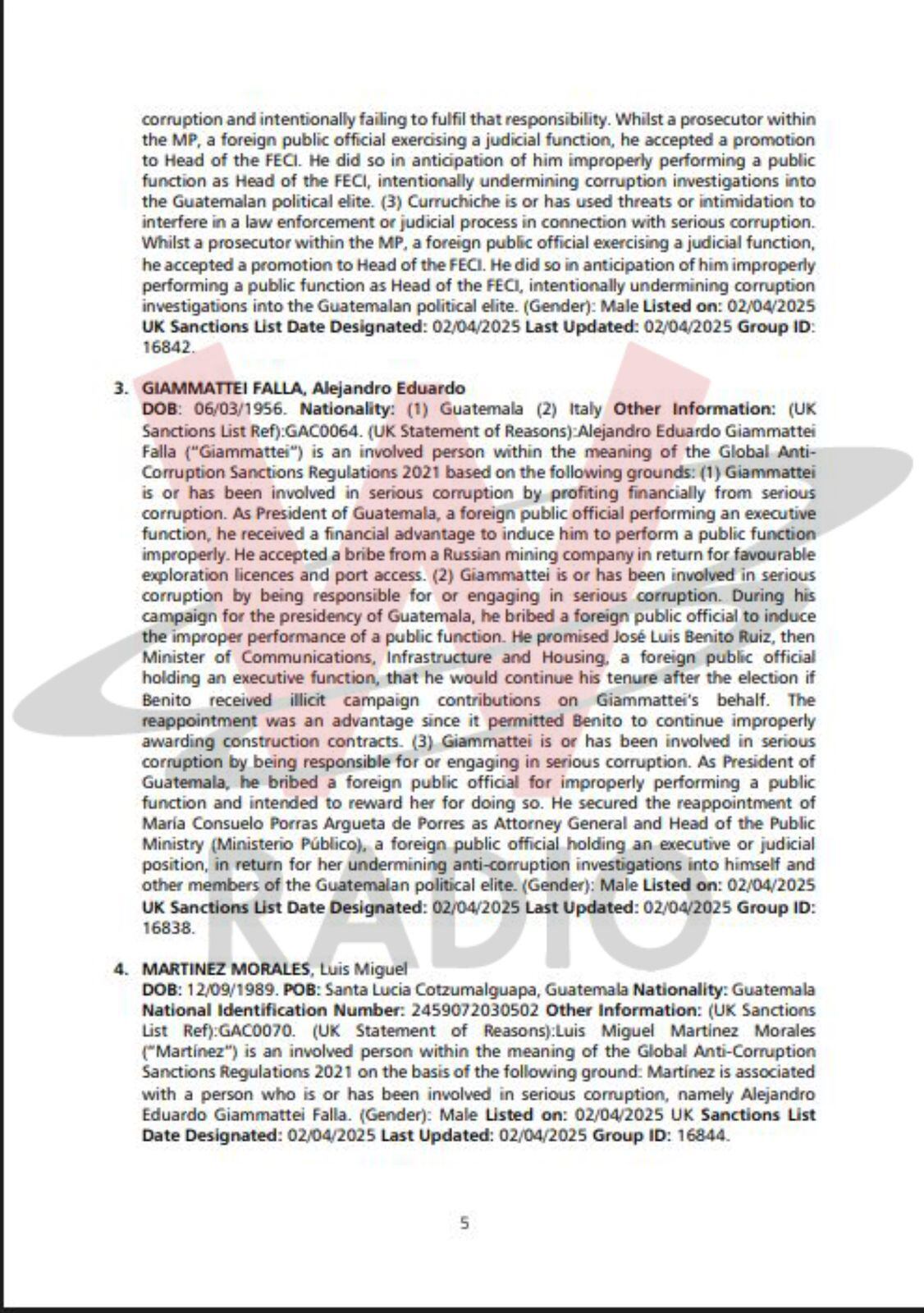 La W conoció que el nombre del fiscal de Guatemala Rafael Curruchiche aparece en la lista global anticorrupción del Reino Unido.