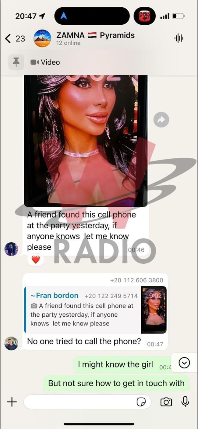 Escobar le envió a W Radio un pantallazo en el que, horas después, la organización Zamna supuestamente informa, a través de un grupo de WhatsApp; que el celular de Estefanía fue encontrado en el lugar donde se realizó el festival.