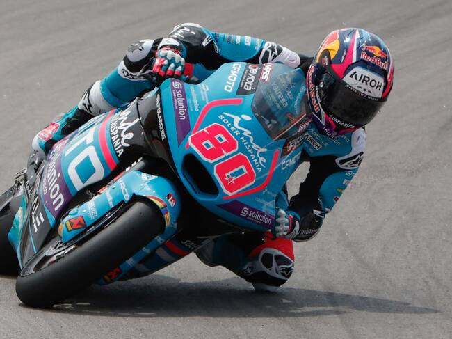ALCAÑIZ (TERUEL), 06/06/2025.- El piloto coloombiano de Moto2 David Alonso, del CFMOTO Inde Aspar Team, durante los entrenamientos libres para el Gran Premio de Aragón que se disputa este fin de semana en el circuito Motorland Alcañiz (Teruel). EFE/ Javier Cebollada / Javier Cebollada (EFE)
