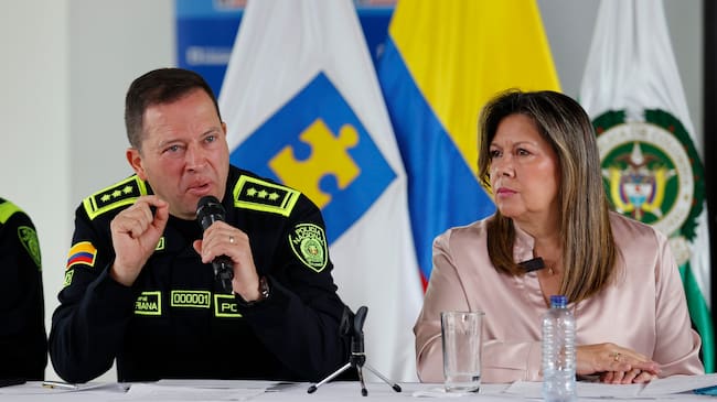 AME4497. BOGOTÁ (COLOMBIA), 09/06/2025.- El director general de la Policía, Carlos Fernando Triana (i), habla junto a la fiscal general de Colombia, Luz Adriana Camargo, durante una rueda de prensa este lunes, en Bogotá (Colombia). Camargo aseguró que la investigación por el atentado contra el senador Miguel Uribe Turbay apunta a un grupo criminal organizado y confirmó que las autoridades están enfocadas ahora en esclarecer quiénes fueron los autores intelectuales del ataque. EFE/ Mauricio Dueñas Castañeda / Mauricio Dueñas Castañeda (EFE)