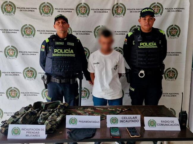La detención se llevó a cabo en el sector El Mosquito, en la comuna 8 - Villa Hermosa, donde alias “diadema” fue sorprendido portando prendas de uso exclusivo de las fuerzas militares, incluyendo un chaleco tipo arnés, una pañoleta militar, un pasamontaña, un radio con cargador, un bolso y un celular, con un valor superior a los cinco millones de pesos.