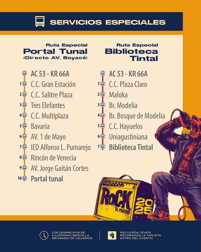 Estas son las rutas y horarios especiales de TransMilenio por el Rock Al Parque 2025