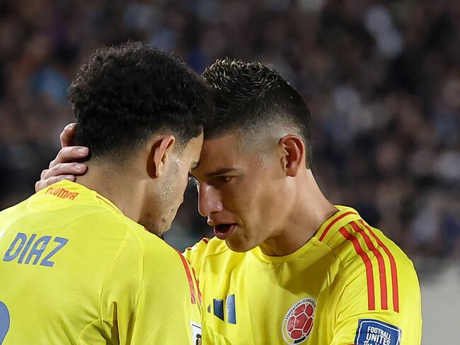 James Rodríguez y Luis Díaz festejan el gol de Colombia ante Argentina. (Photo by Alejandro PAGNI / AFP) (Photo by ALEJANDRO PAGNI/AFP via Getty Images) / ALEJANDRO PAGNI
