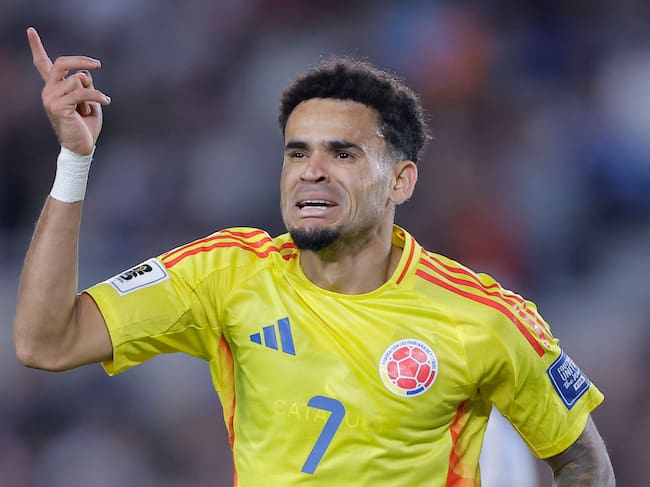 AME5020. BUENOS AIRES (ARGENTINA), 10/06/2025.- Luis Díaz de Colombia celebra un gol este martes, durante un partido por las eliminatorias sudamericanas para el Mundial 2026 entre las selecciones de Argentina y Colombia en el estadio Monumental en Buenos Aires (Argentina). EFE/ Juan Ignacio Roncoroni / Juan Ignacio Roncoroni (EFE)