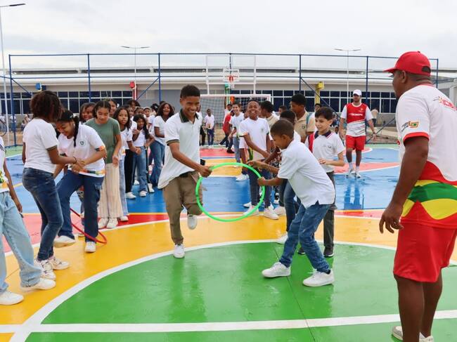 Desde muy temprano, el equipo del área de recreación y deportes del IDER se tomó las canchas del colegio, llevando dinámicas lúdicas y deportivas que hicieron vibrar a niños, niñas y jóvenes de primaria y secundaria. Bailes, juegos, carreras y competencias llenaron de color la mañana en esta comunidad del norte de Cartagena, que hasta hace poco tiempo clamaba por ser visibilizada y escuchada.
