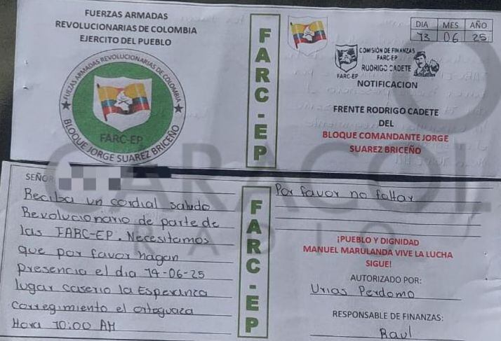 Al momento de su captura, se le incautaron varios panfletos extorsivos, con los cuales solía citar a los comerciantes y ganaderos a reuniones para los cobros.