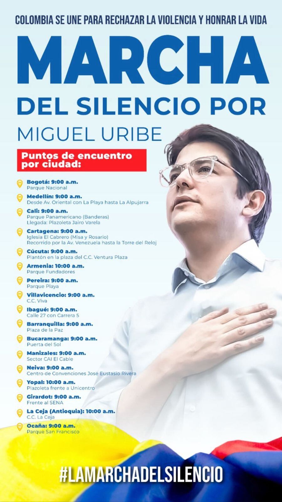 Una movilización para pedir por la pronta recuperación del senador Miguel Uribe y en rechazo a la violencia que vive el país.