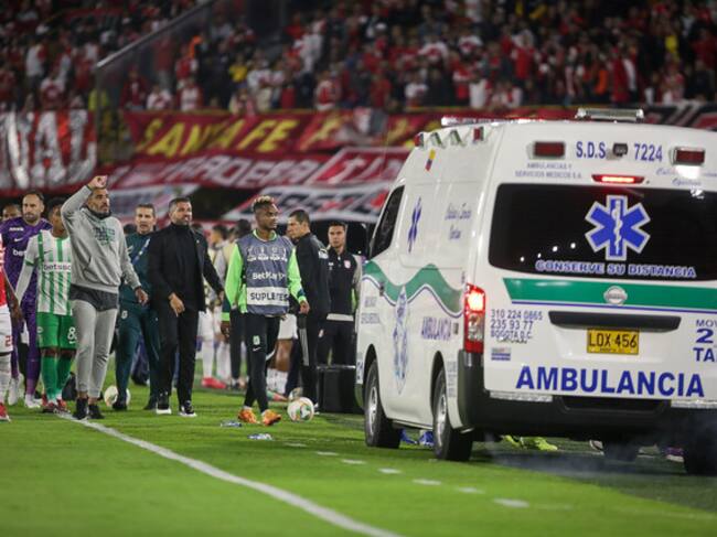 El lateral derecho encendió las alarmas tras desplomarse este jueves en pleno partido entre Santa Fe y Atlético Nacional.