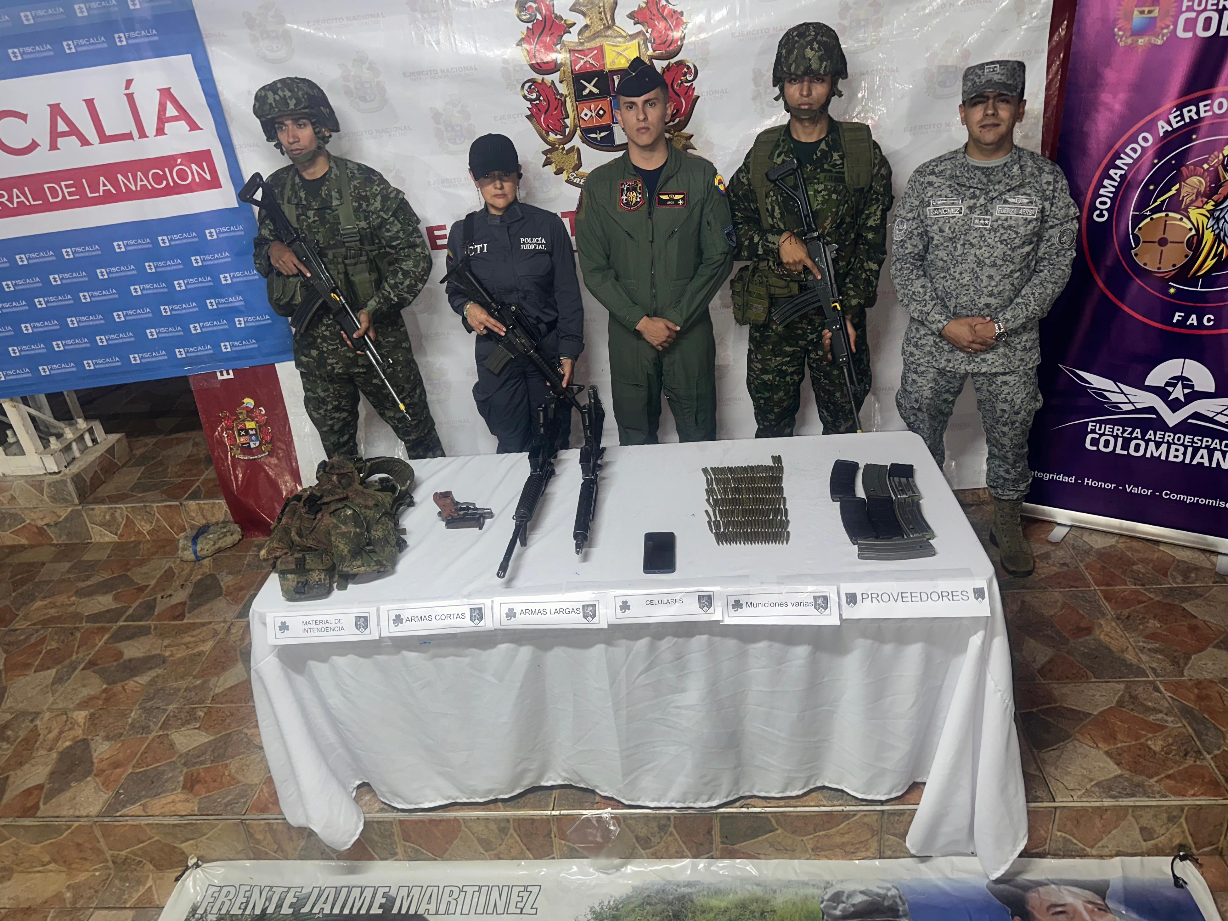 Este golpe a la disidencia de las Farc “Jaime Martinez” al servicio de alias Mordisco, cumplido en el corregimiento de La Liberia en Jamundí, fue resultado de una operación conjunta del Ejército apoyado por la Fuerza Aeroespacial Colombiana y el CTI de la Fiscalía.