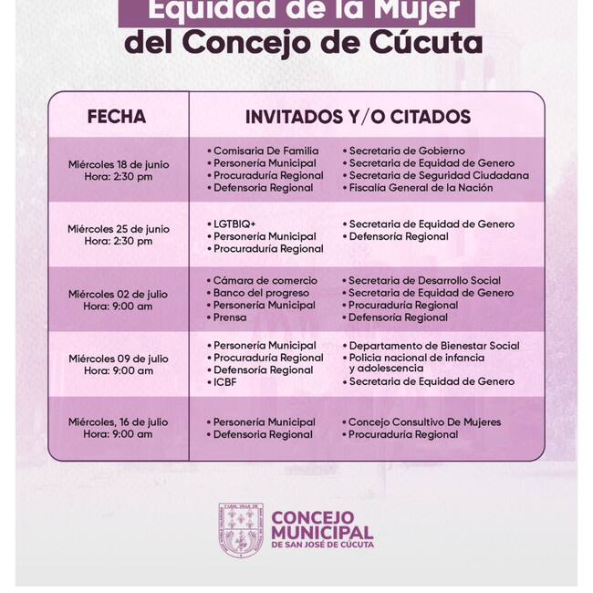 Cronograma de la Comisión durante junio y julio. / Foto: Concejo de Cúcuta.