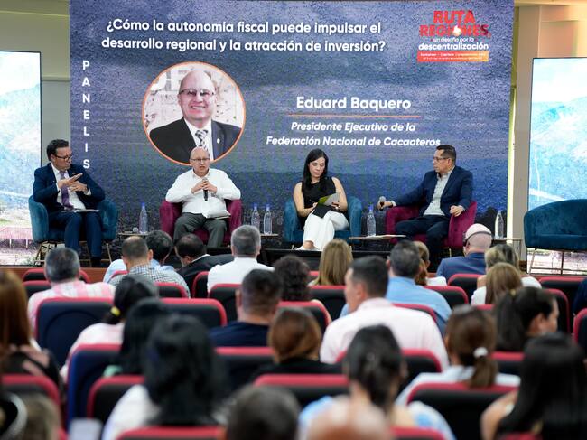 El panel: ¿Cómo la autonomía fiscal puede impulsar el desarrollo regional y la atracción de inversión? fue desarrollado por: Omar Lengerke - Rector de Unidades Tecnológicas de Santander, Eduard Baquero - Presidente de la Federación Nacional de Cacaoteros y Andrea Serrano - Gerente General Zona Franca Santander.