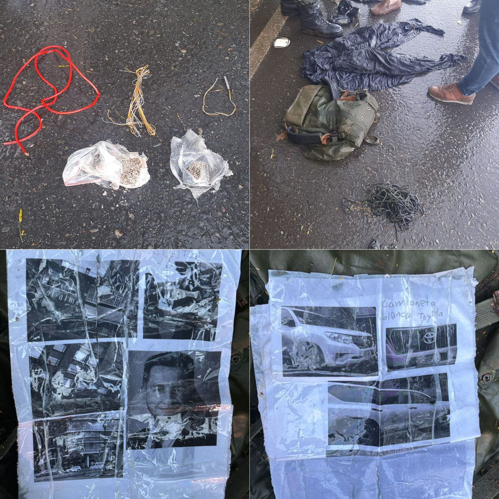 Según Idárraga, supo por sus fuentes que las autoridades encontraron en el departamento del Meta varios elementos sospechosos: “Cables detonantes, elementos para fabricación de explosivos, fotos de mi vehículo, mis escoltas y mi rostro con una imagen que decía ‘Objetivo’”.