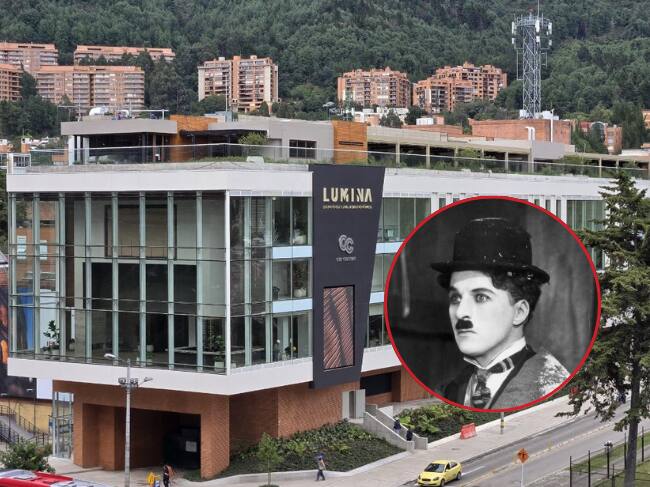Lumina, complejo de entretenimiento de Cine Colombia Foto: X de Munir Falah; Charles Chaplin 'The Gold Rush', imagen de referencia (Getty Images).