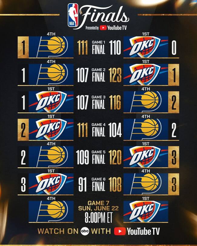 El Paycom Center de Oklahoma City acogerá este domingo a partir de las 7:00 pm (hora Colombia), en el enfrentamiento definitivo entre unos Thunder y unos Pacers que, más allá de ser dos mercados pequeños lejos de los gigantes por nombre de la liga, han regalado unas Finales apasionantes y repletas de momentos icónicos.