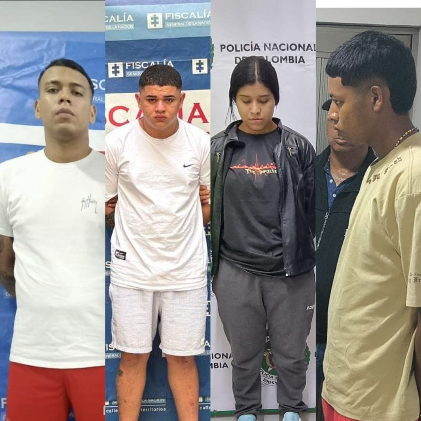Las personas capturadas responden al nombre de Oswal Moisés Ospino Navarro, detenido en Medellín; Isaac Enrique Márquez Charris, capturado en Arjona, Bolívar; Andrea Camila Berdugo, quien se escondía en la ciudad de Bogotá y Brian Augusto Cantillo Salcedo, aprehendido en Santa Marta.
