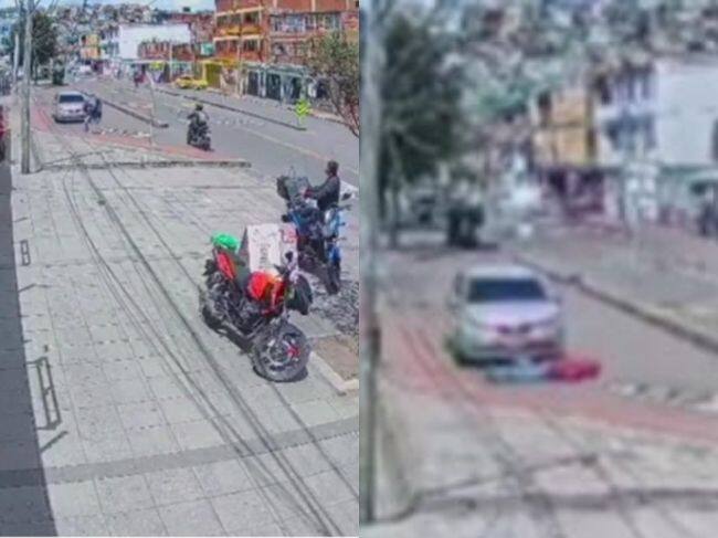 Al delincuente lo recogen en una moto que lo estaba esperando justo al frente de la calle, mientras Juan Carlos queda tendido en la calle al frente de un carro.