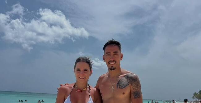 Aldair Quintana y su pareja Emiliana, en Cancún:
