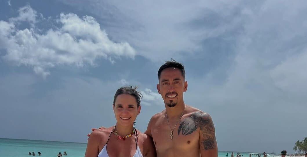 Fabián Sambueza, su esposa Agostina Tomaro y su hijo en República Dominicana: