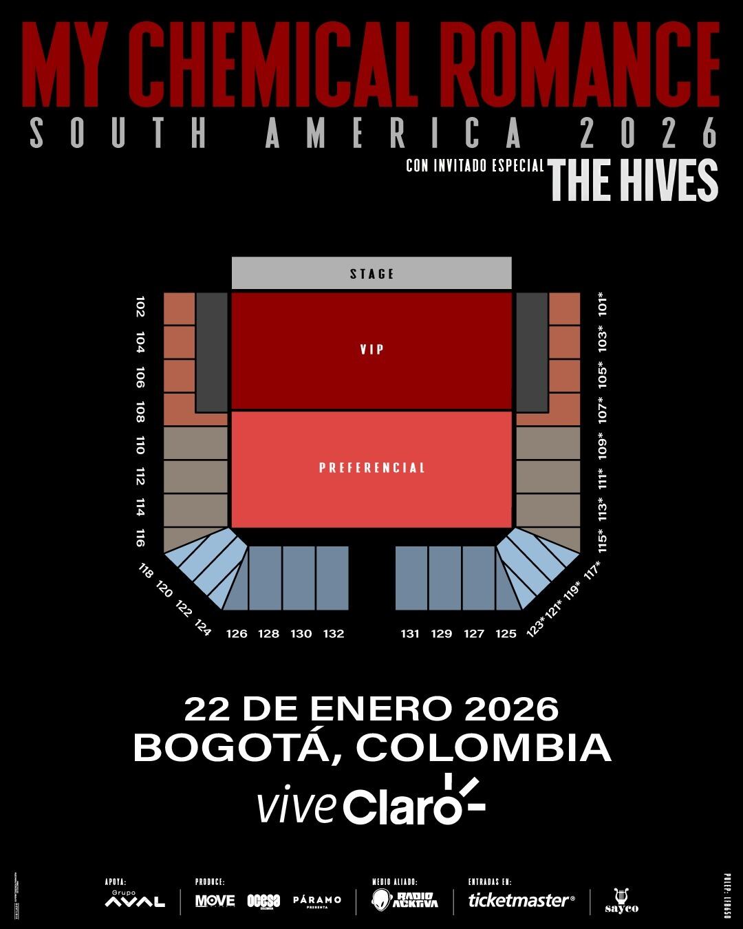 Las canciones de My Chemical Romance suman más de 500 millones de streams globales al año. Sus tres videos más vistos en VEVO superan cada uno los 100 millones de reproducciones. La preventa para el Grupo AVAL de la gira South America Tour 2026 va del 2 al 4 de julio del 2025 a las 10 a.m., la venta al público general es a partir del 4 de julio a las 10:00 a.m. a través de Ticketmaster.co.