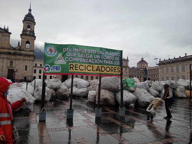 Asociación de Recicladores llena la Plaza de Bolívar con reciclaje a modo de protesta: ¿por qué?